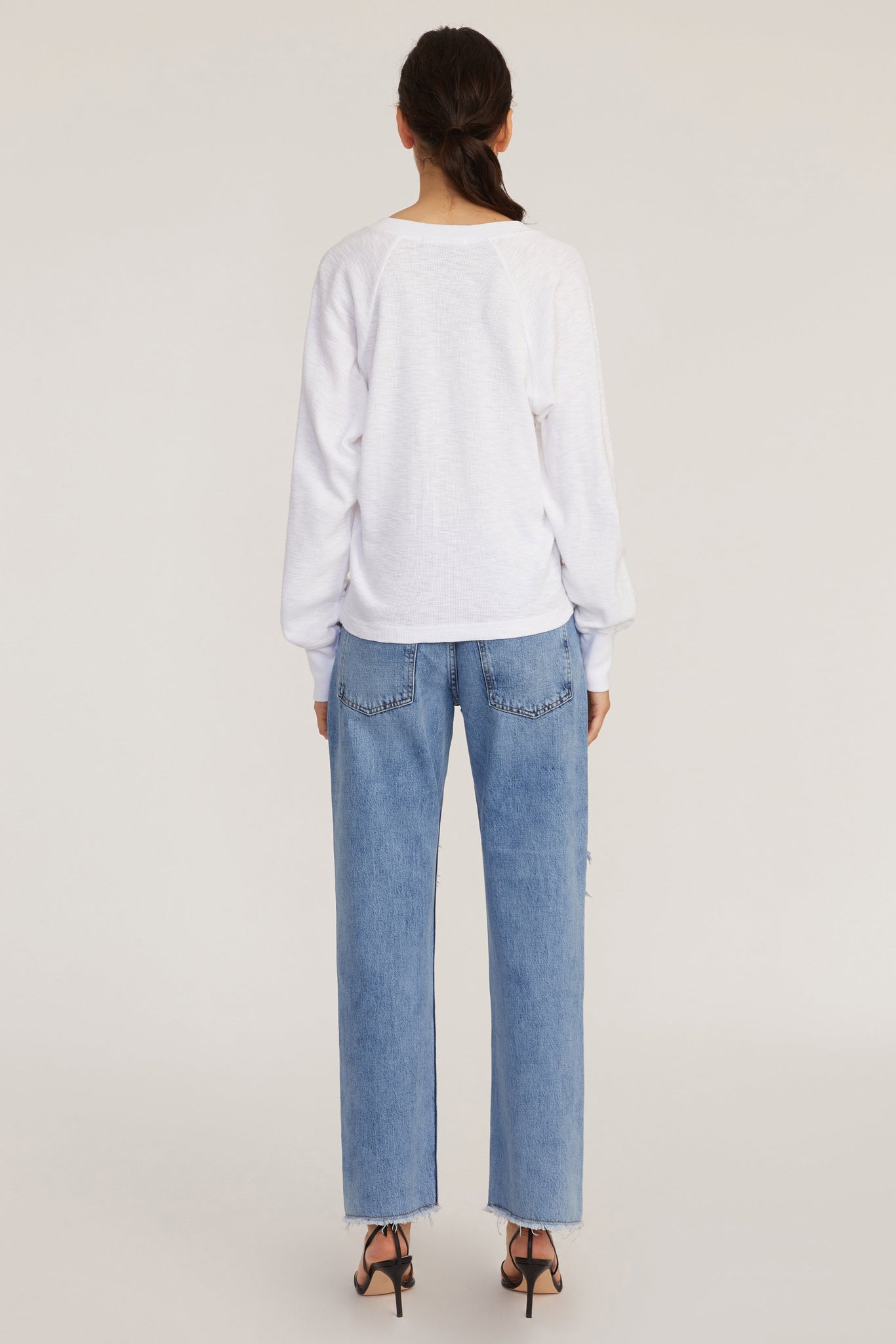 Unexpectedly sexy and effortlessly elevated, our So Uptight Waffle Knit Henley will easily become a part of your daily rotation. Juxtapose the easy fit on this top with any of our tailored ultra-high waisted denim.
