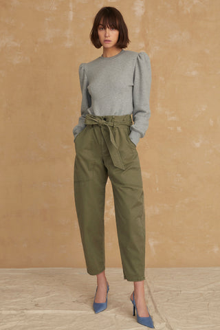 - Double belt loops to create paper bag waist
