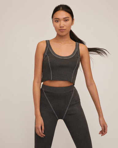 Cropped Cotton Stretch Seamed Henley - Ash